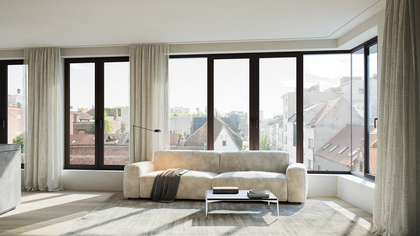 De afwerking van de appartementen is van een onberispelijk niveau, en dat tot in de kleinste details. Van de gemeenschappelijke delen tot de privatieve woningen: alles straalt klasse en verfijning uit. De ruime appartementen bieden een heerlijk open gevoel en baden in het licht dankzij de royale raampartijen.
